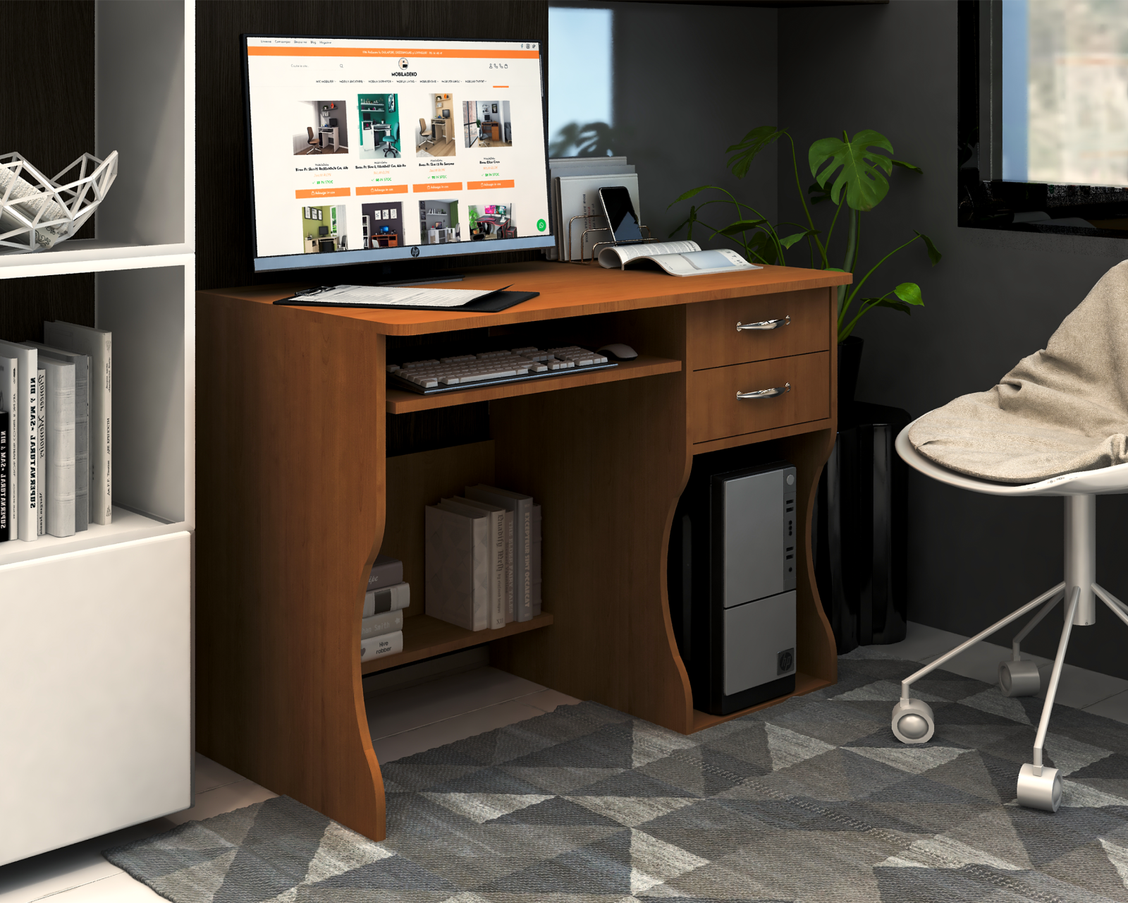Biroul este dotat cu 2 sertare pentru depozitare si suport glisant pentru tastatura.
