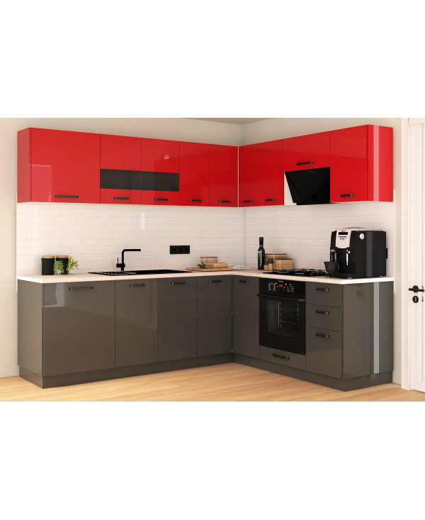 Bucatarie Daria colt V2, Rosu+Antracit
