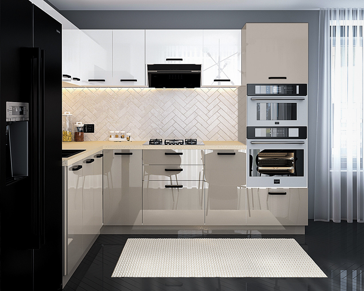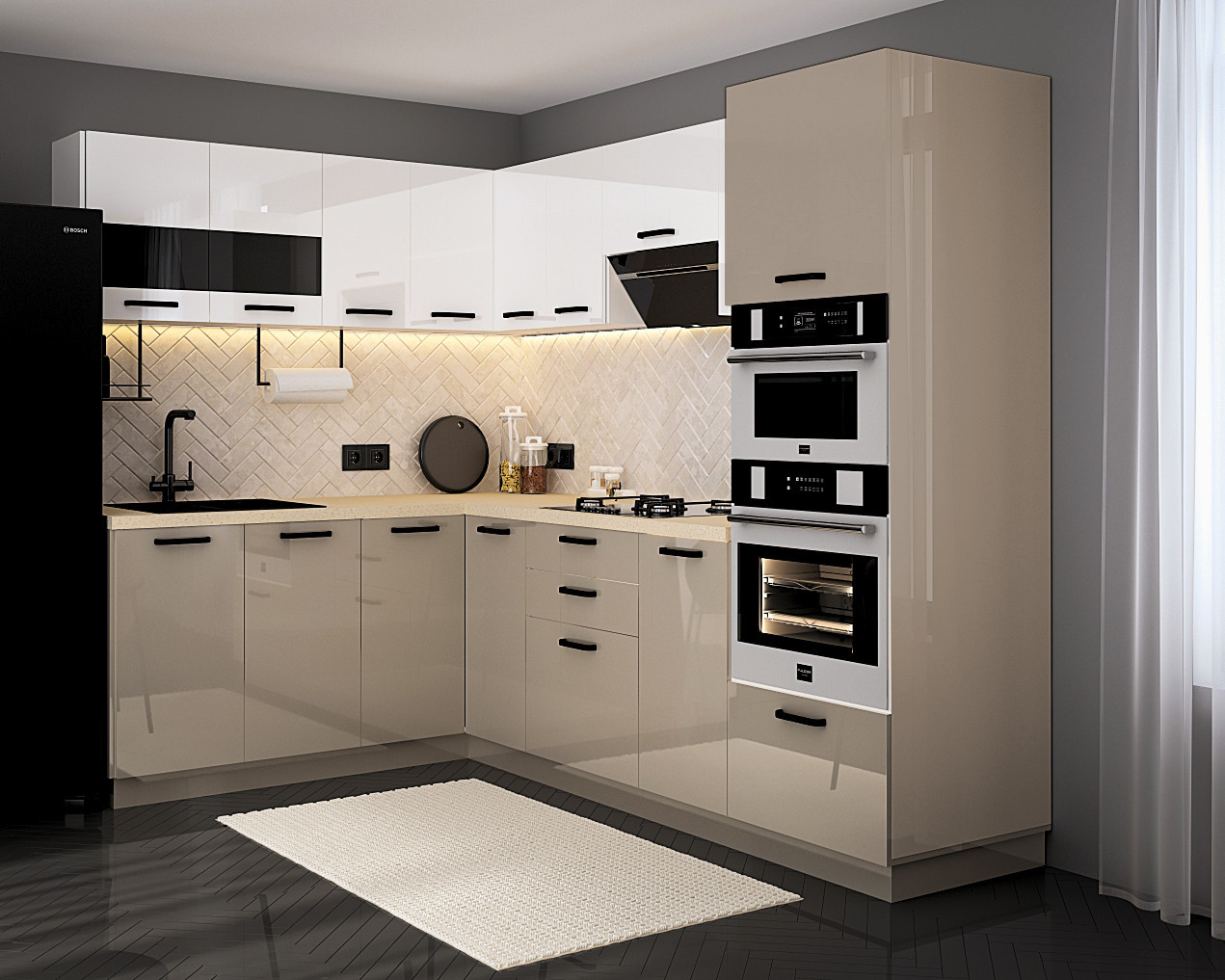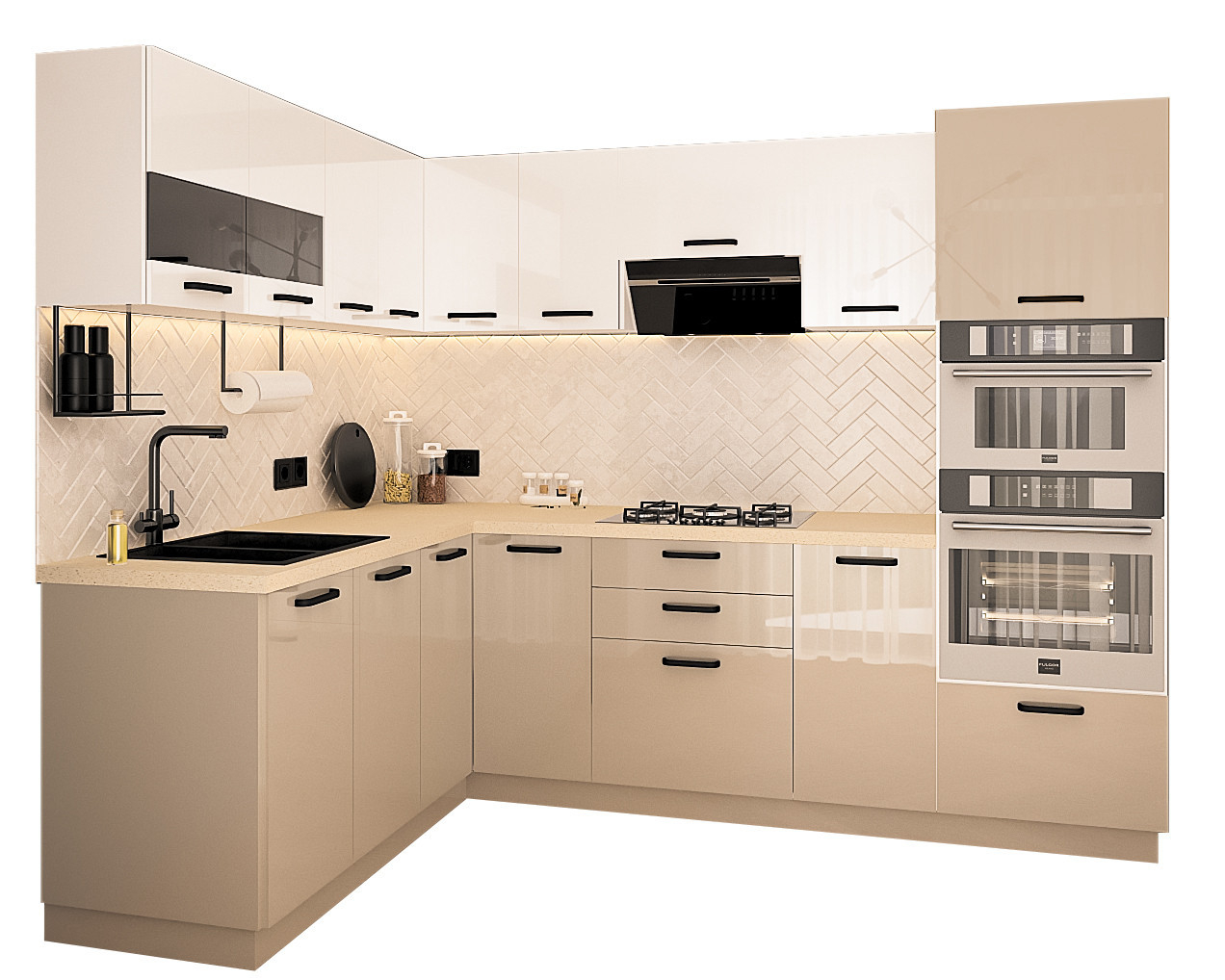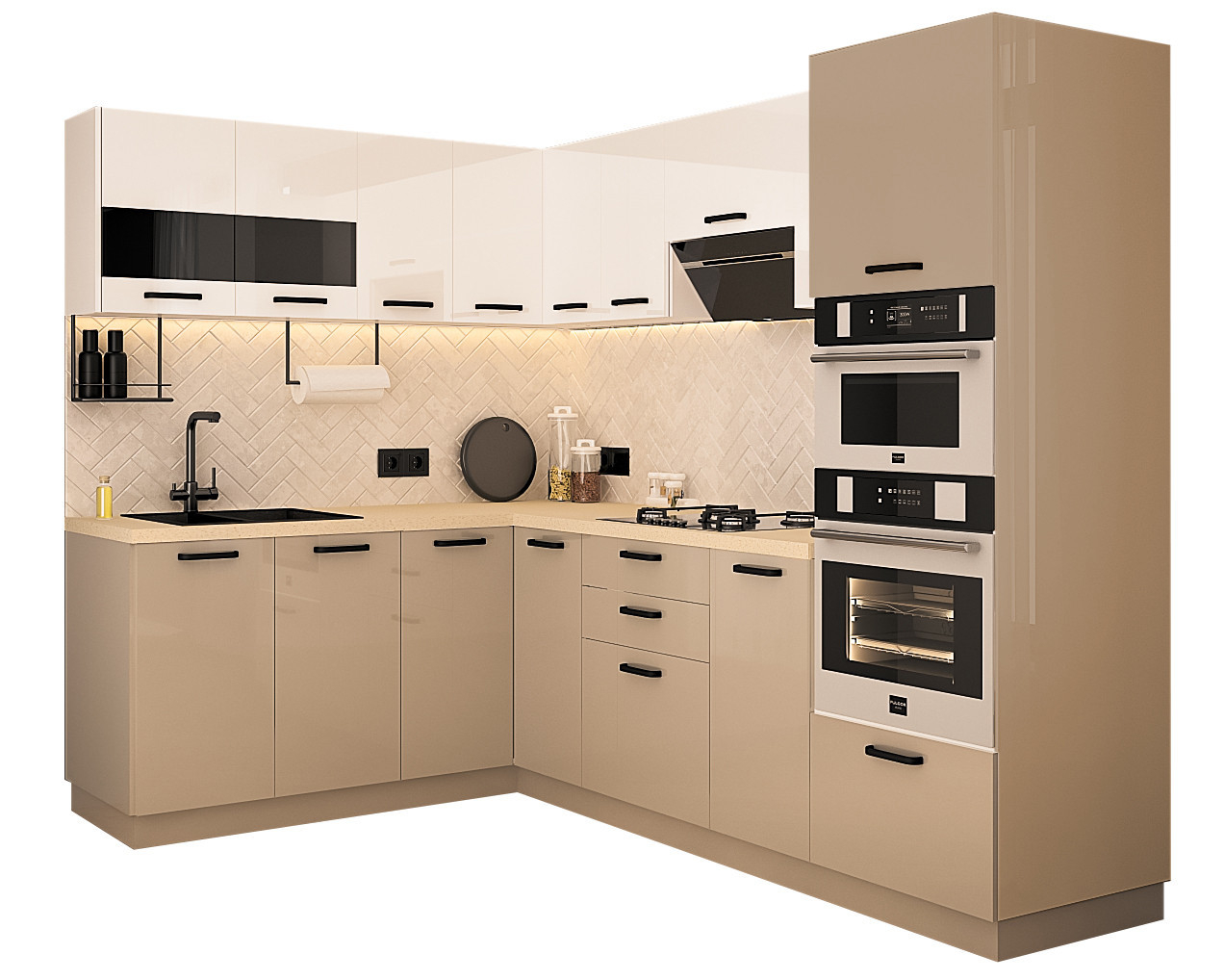 ● Front: MDF Lucios Alb+Cappuccino