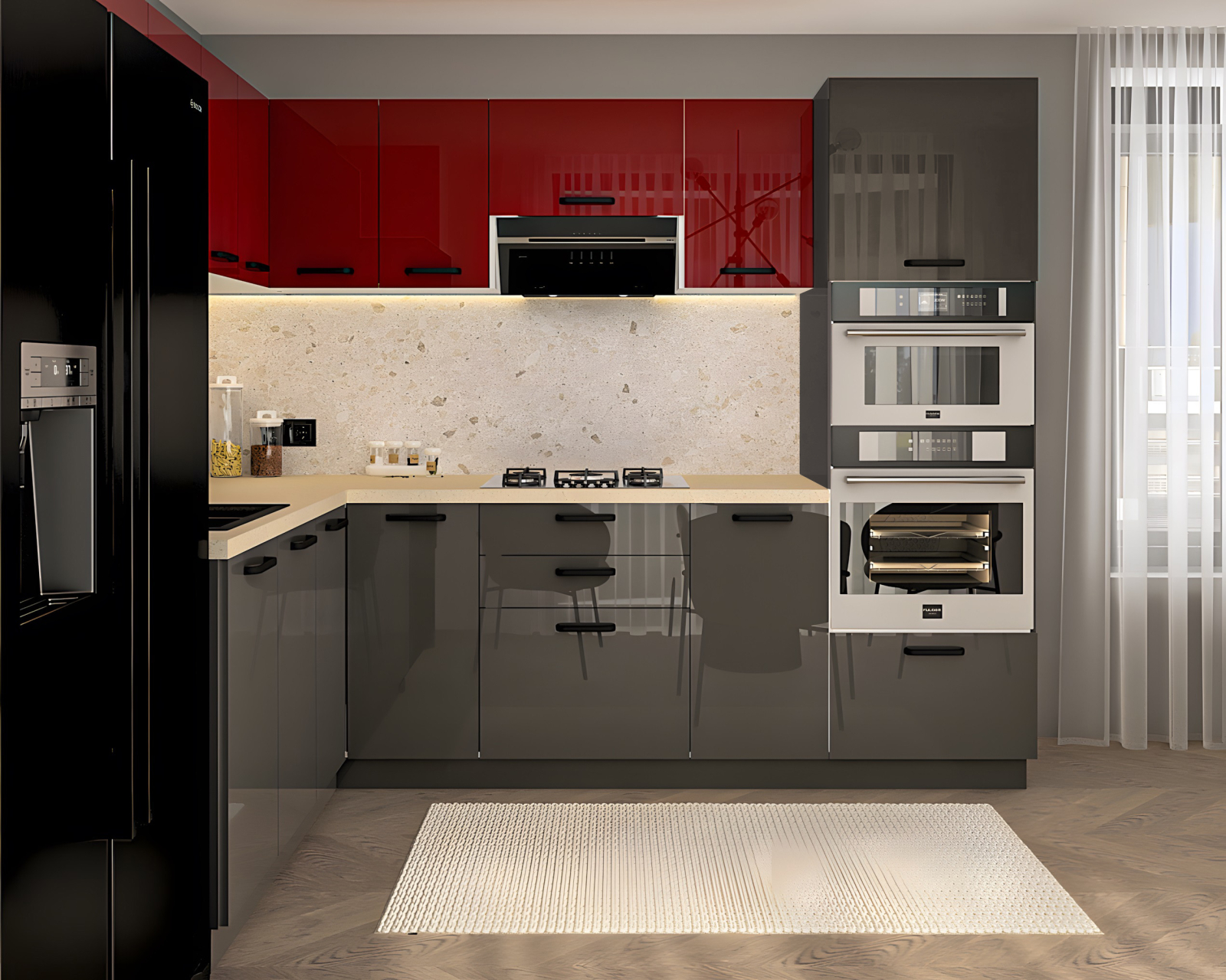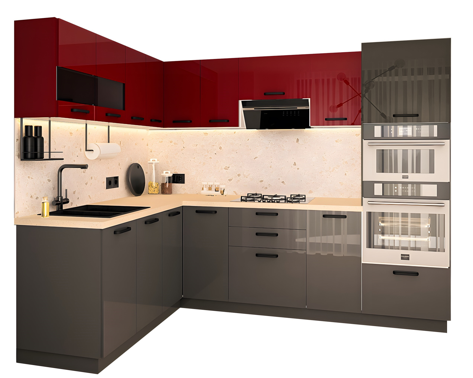 Bucatarie Daria colt V1, Rosu+Antracit