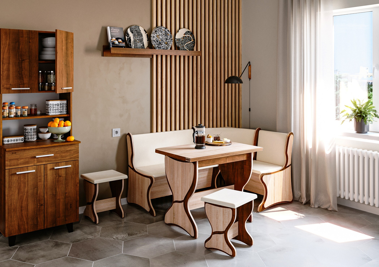 Set colțar bucătărie Argentina Sonoma Fildes, cu design clasic și dimensiuni compacte, ideal pentru utilizarea eficientă a spațiului din bucătărie. Colțarul este reversibil și poate fi montat atât pe stânga, cât și pe dreapta, în funcție de configurația încăperii.