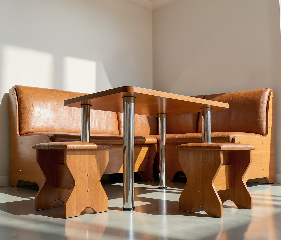 Canapea tip colțar pentru bucătărie, cu formă în L și design contemporan, concepută pentru utilizare practică zilnică. Dispune de spații de depozitare integrate și structură reversibilă, adaptabilă diferitelor configurații ale încăperii.