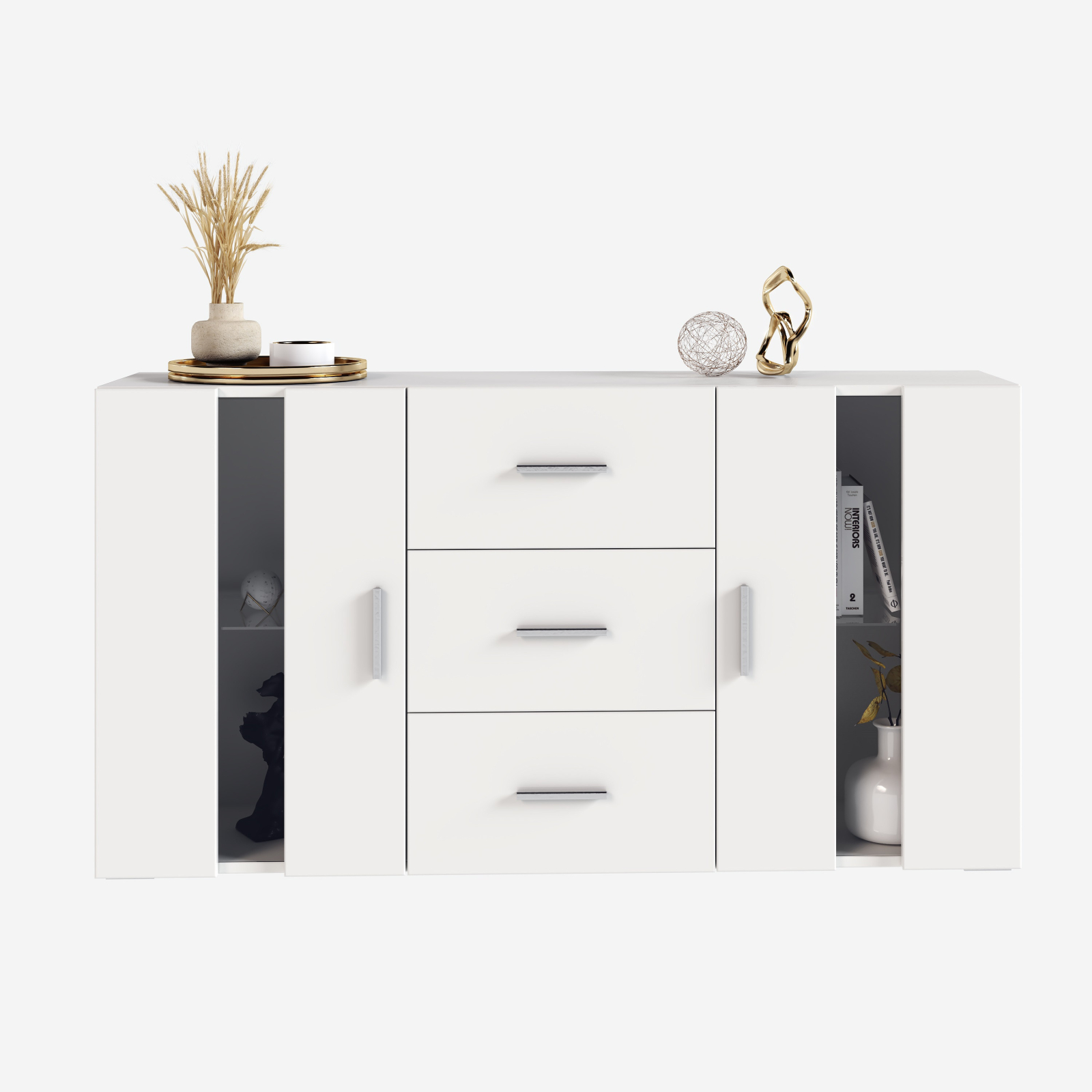 Comodă pentru dormitor, realizată din PAL melaminat și MDF, cu design modern și spații de depozitare bine compartimentate. Potrivită pentru organizarea eficientă a obiectelor personale.