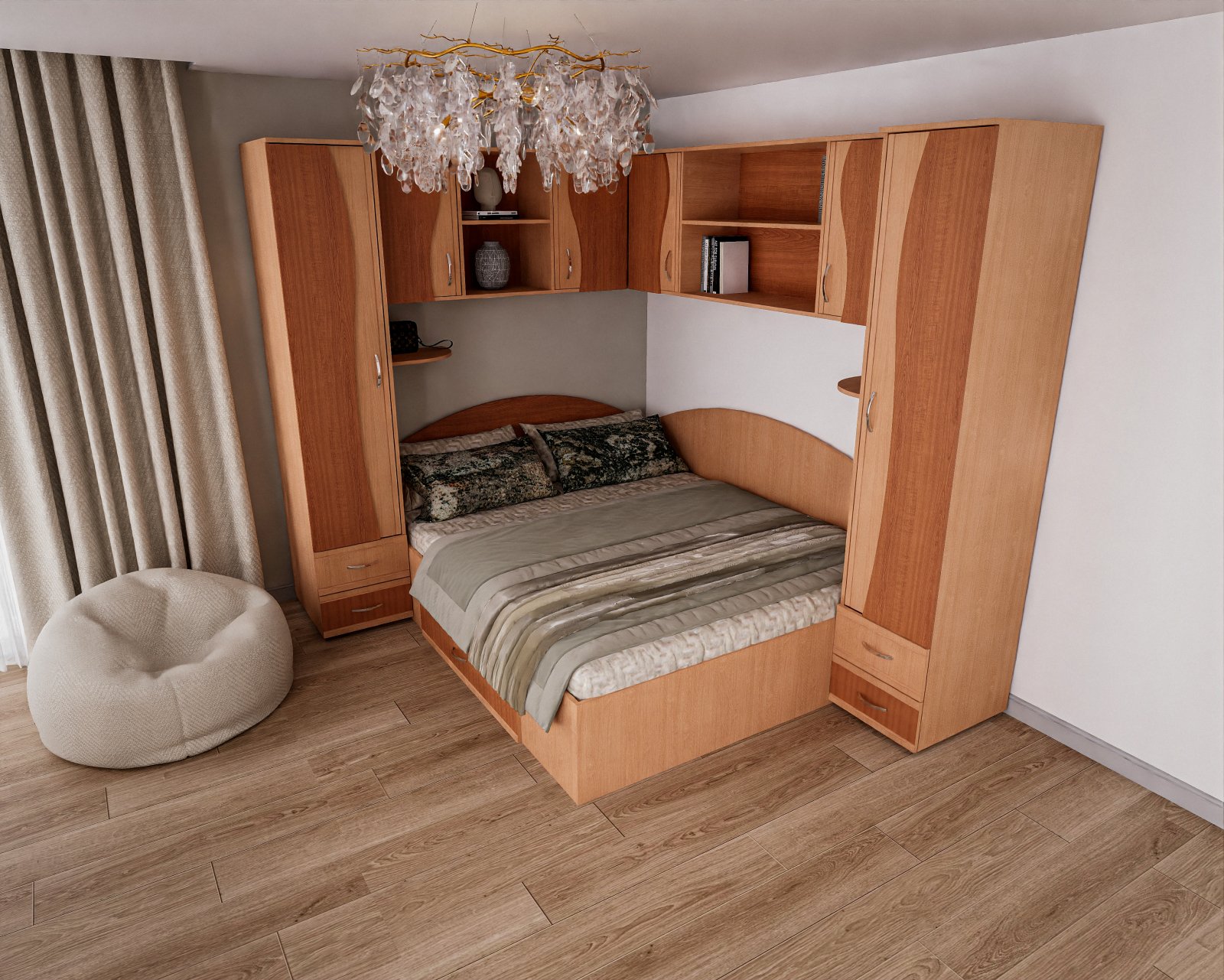 - 5 sertare ( 4 la cele 2 dulap-uri + 1 la pat )