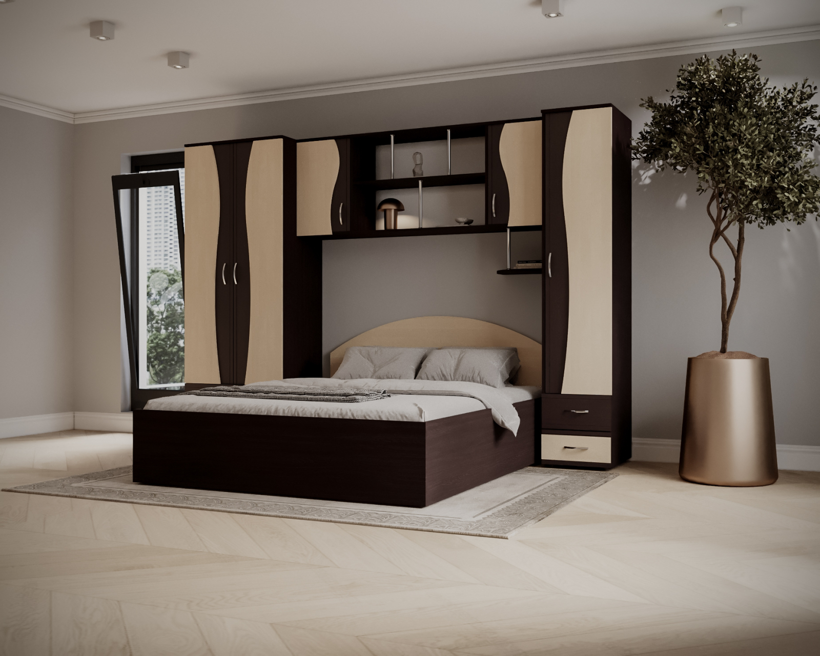 Dormitor Tineret cu D2 Wenge+Mesteacan