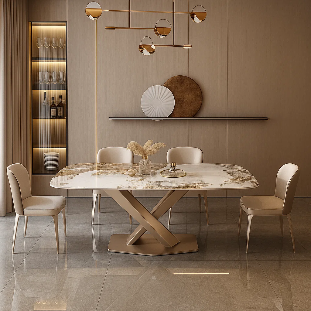 Fie că este folosită într-un decor minimalist sau ca punct de atracție într-un spațiu mai elaborat, această masă de dining promite să îmbogățească orice ambient cu o atmosferă caldă și primitorie. Este, în esență, o investiție într-un stil de viață unde frumusețea designului modern se întâlnește cu funcționalitatea de neegalat, creând un spațiu unde momentele petrecute împreună devin amintiri prețioase.