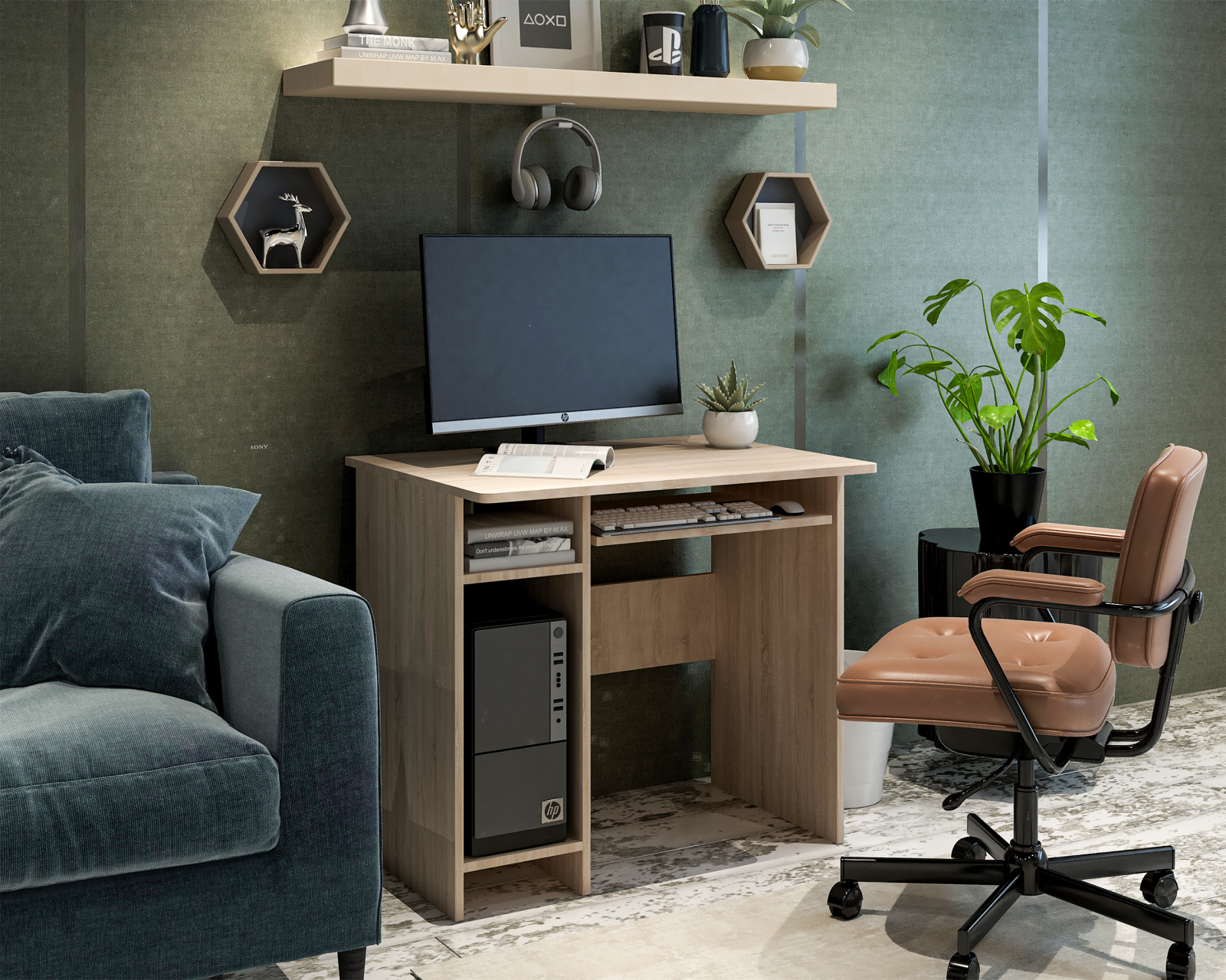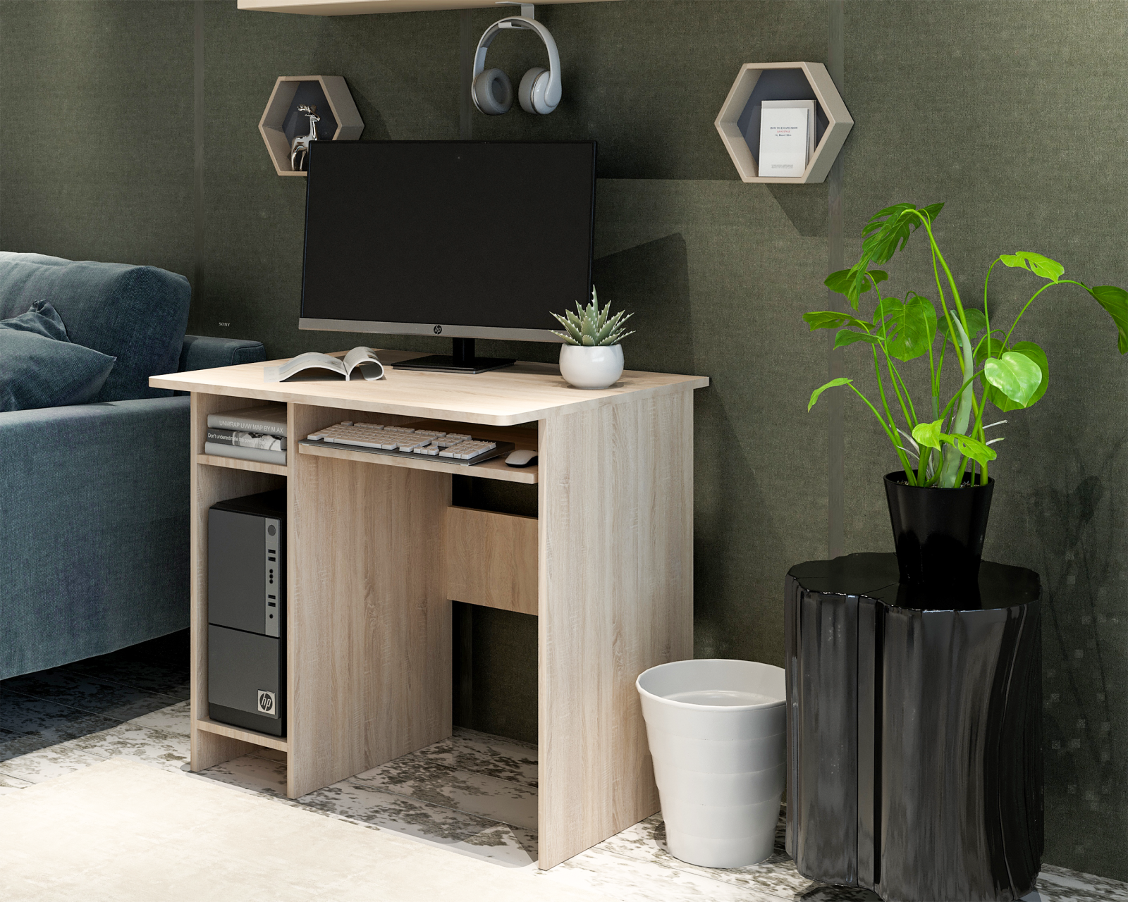 Este un birou modern, realizat din PAL melaminat, cantuit cu abs.