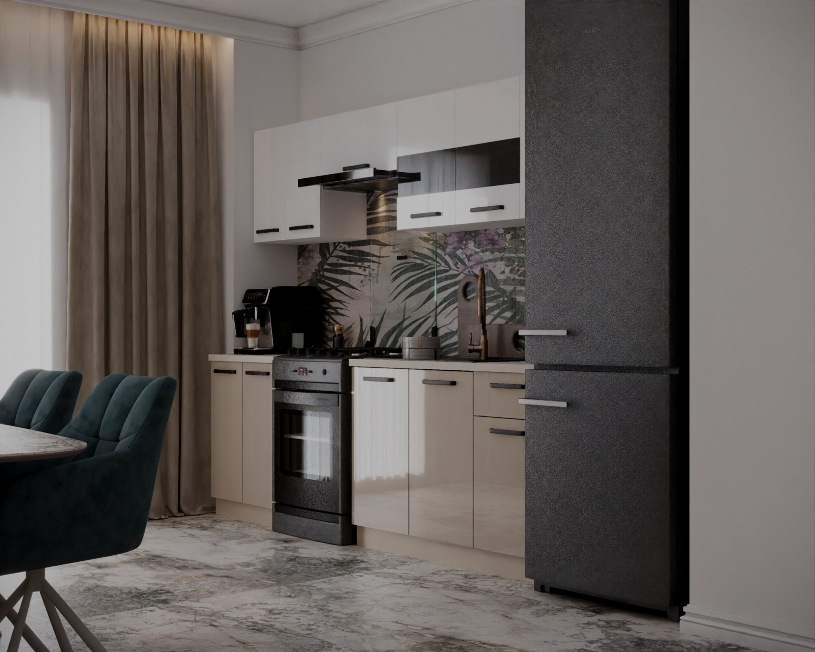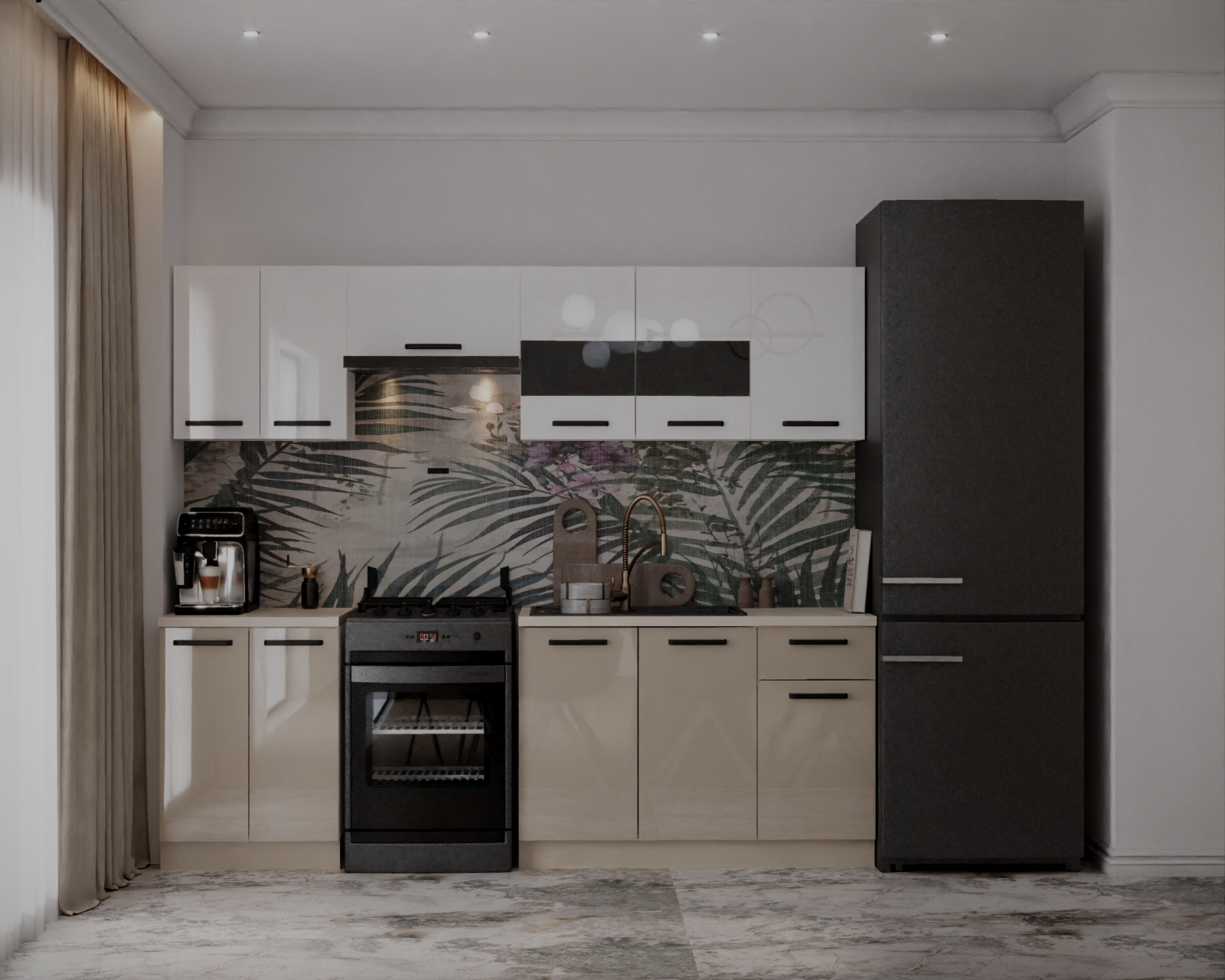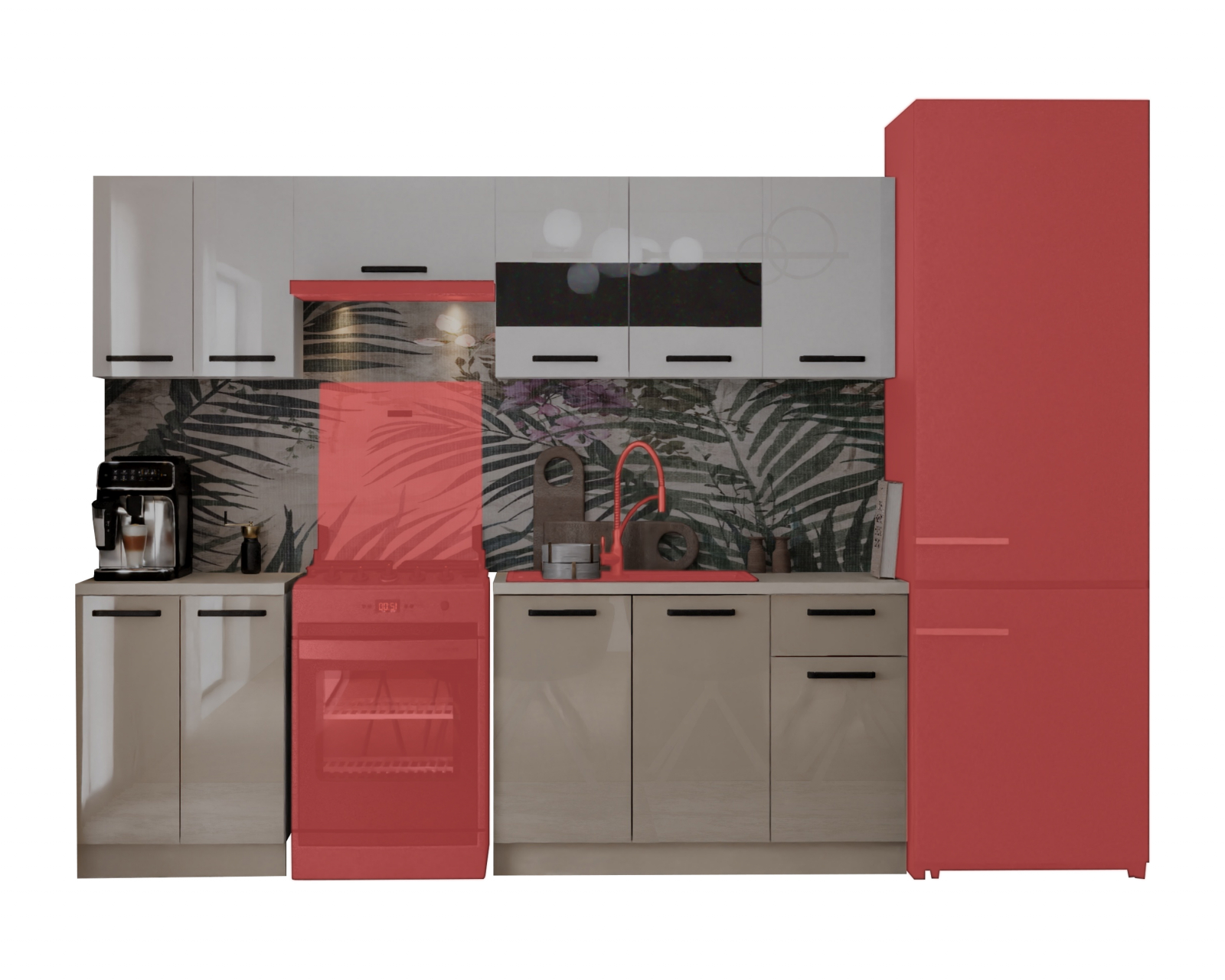 ● Front: Acril, MDF Lucios Alb+Cappuccino