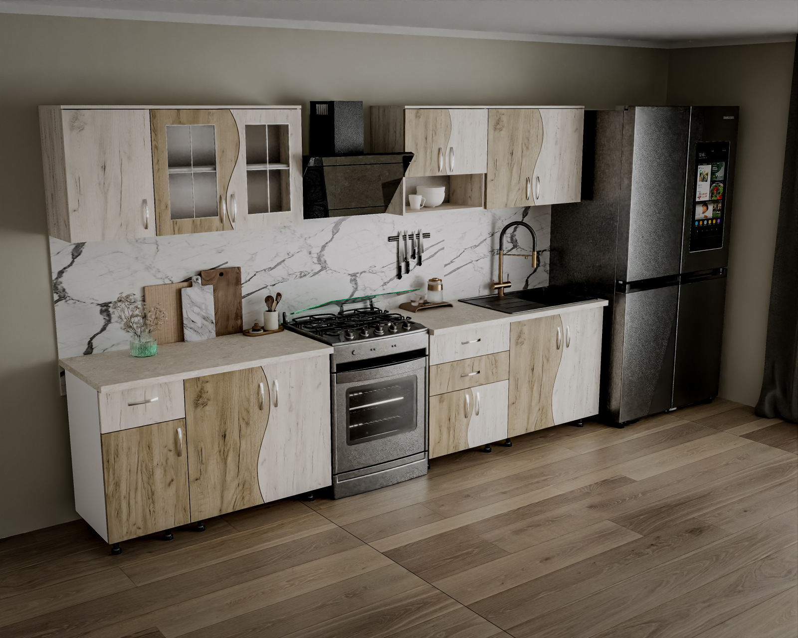 - Dimensiuni set mobila bucatarie (cm): 260 x 200 x 60 cm