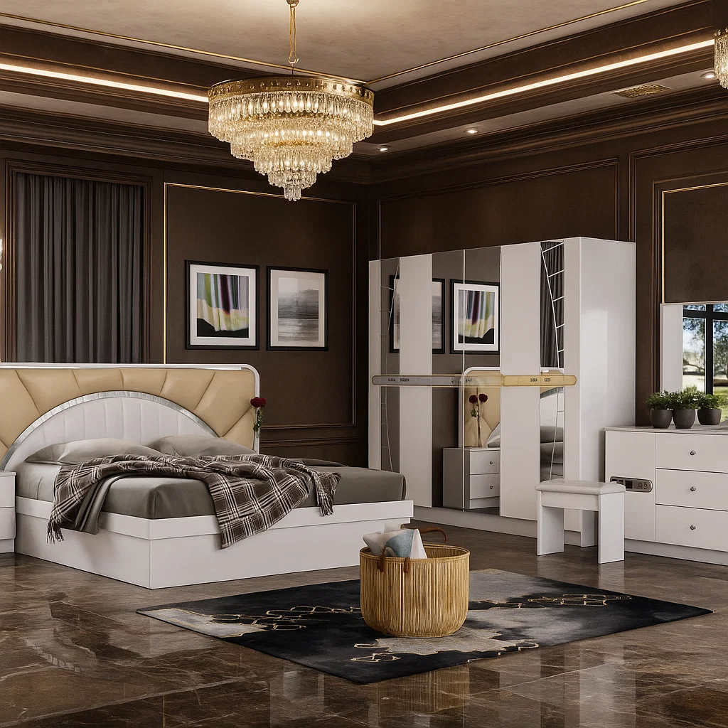 - Dimensiuni pat (cm): Lungime 241 x Adancime 206 x Inaltime (la Tablia mare) 121cm