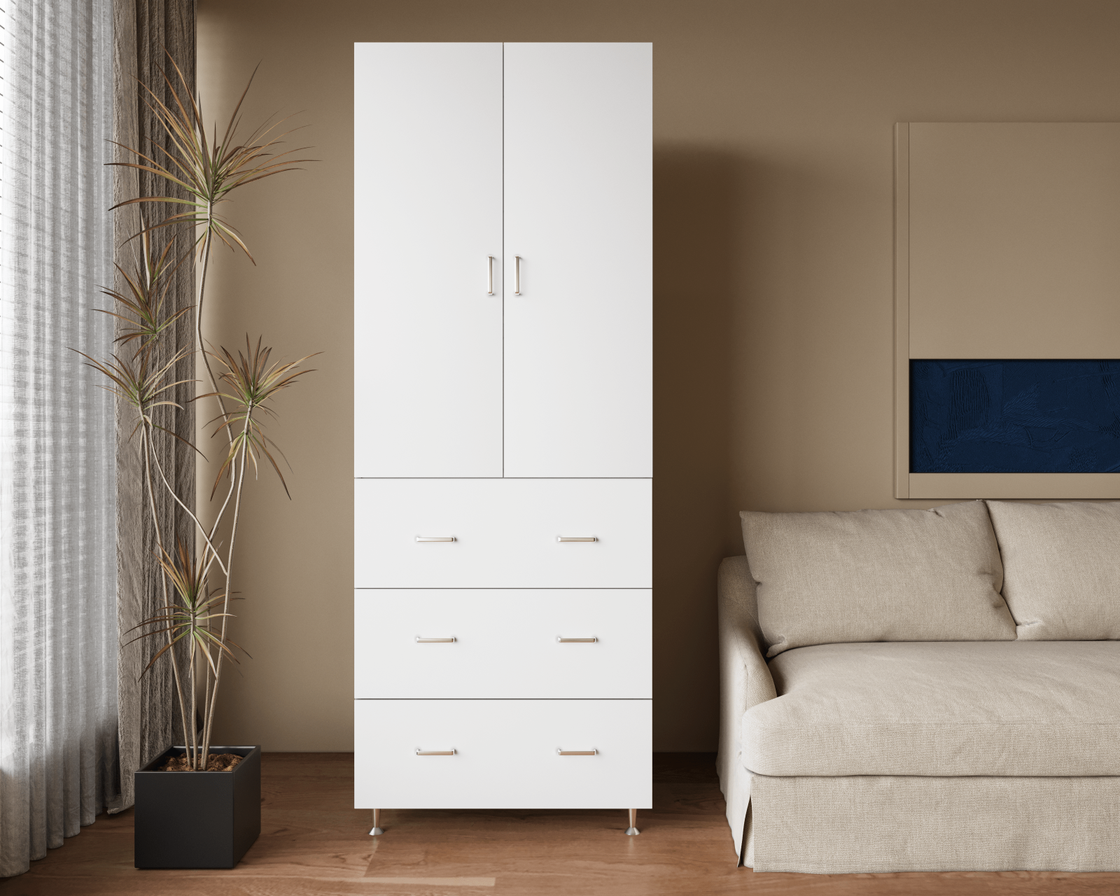 Dulap, 2U-3S, 70x35x180 cm, Alb