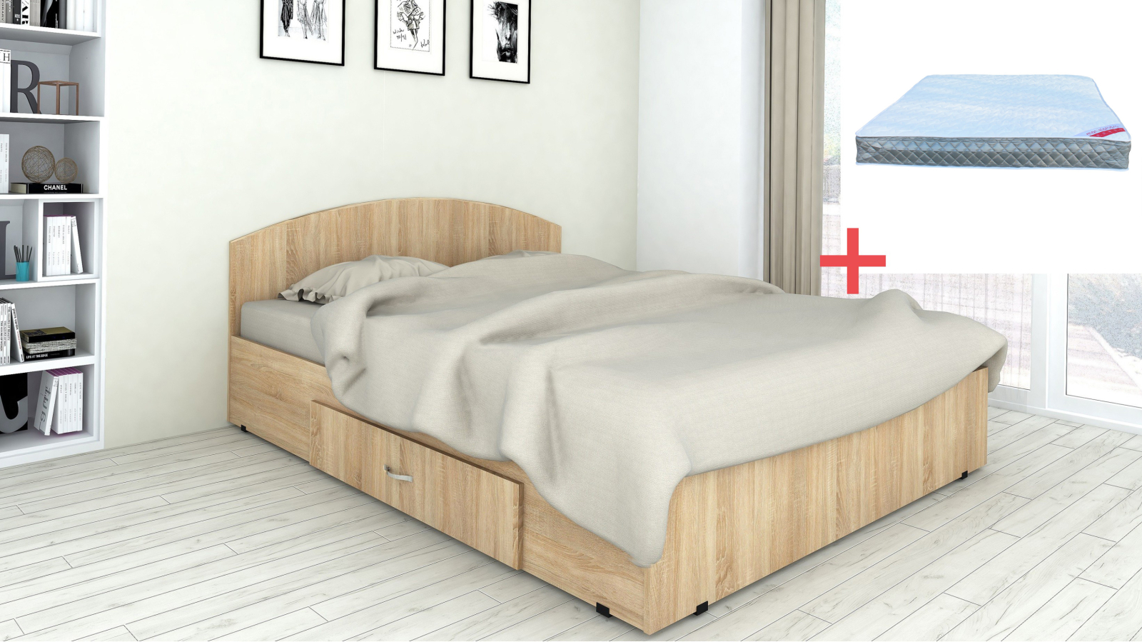 Set pat mijloc cu saltea pentru dormitor, cu design modern și structură practică, prevăzut cu sertar pentru depozitare și saltea cu arcuri, potrivit pentru utilizare zilnică.