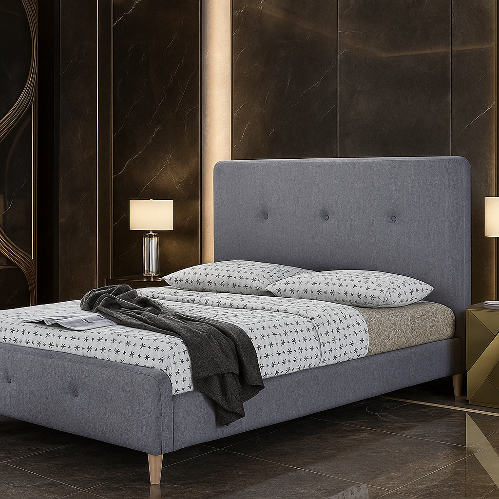 Calitate: Fabricat meticulos cu materiale de înaltă calitate, patul nostru este construit pentru a rezista. Cadrul robust din lemn asigură durabilitate, în timp ce tapiteria premium adaugă o notă de opulentă.