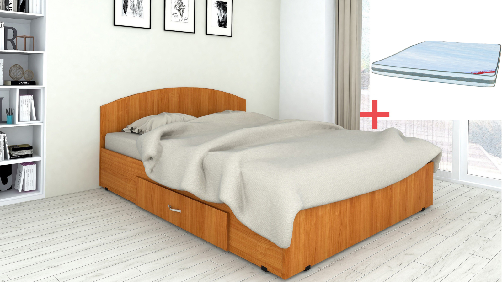 Set pat mijloc cu saltea pentru dormitor, cu design modern și structură practică, prevăzut cu sertar pentru depozitare și saltea din spumă, potrivit pentru utilizare zilnică.
