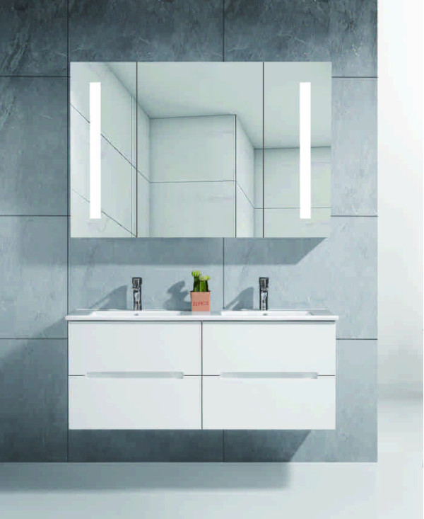 Set mobilier baie realizat din PVC Alb, cu design modern și dimensiuni generoase, ideal pentru băi spațioase.